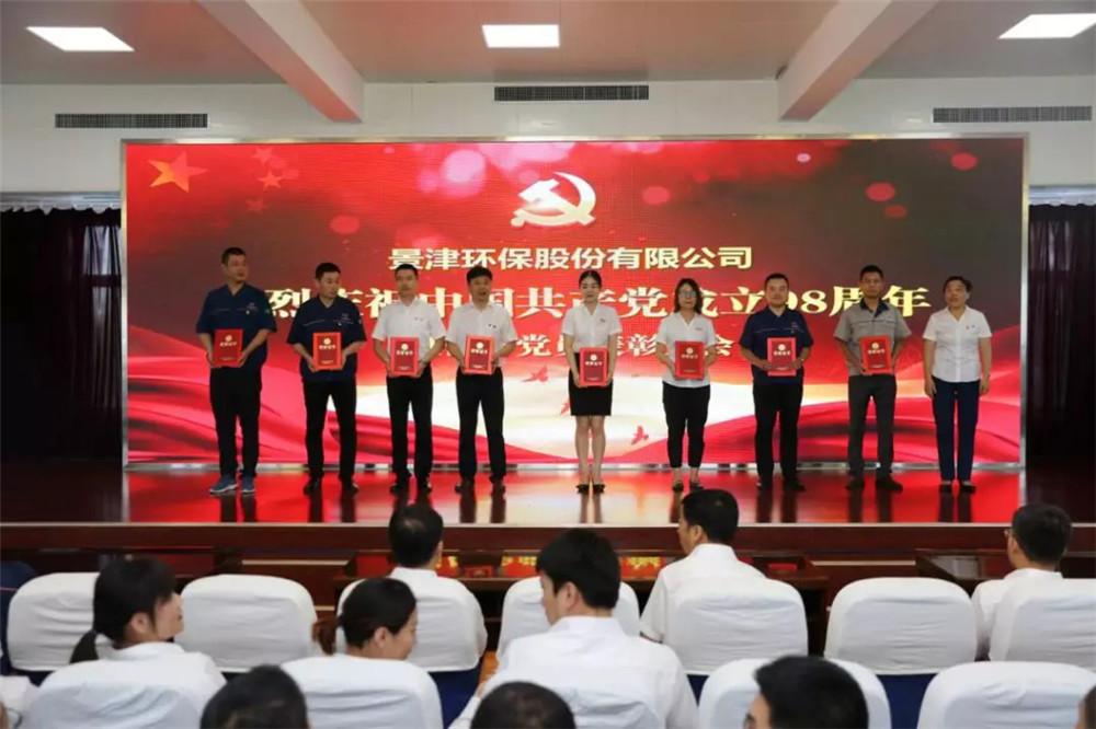 在中國共產黨成立98周年之際,7月1日上午,景津裝備股份有限公司召開慶祝中國共產黨成立98周年大會,重溫黨的歷史,慶祝黨的生日,表彰先進典型,激勵公司黨員干部,為公司繼續努力奮斗,走向世界企業的環保事業努力奉獻。大會由景津黨委委員段慧玲主持。